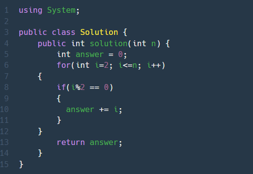 정수 n이하의 짝수들을 찾아서 계속 더하게 만들었다.